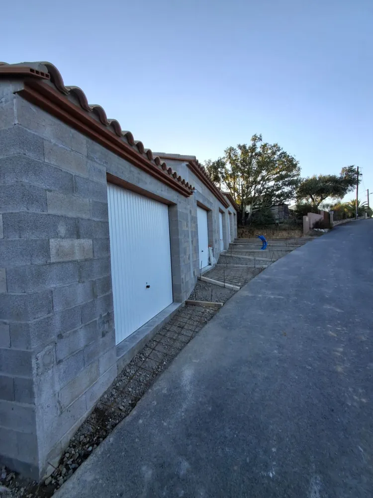 Votre maçon à Vivès est intervenu pour faire la construction de 5 garages fermés afin de facilité l'accès aux parking.