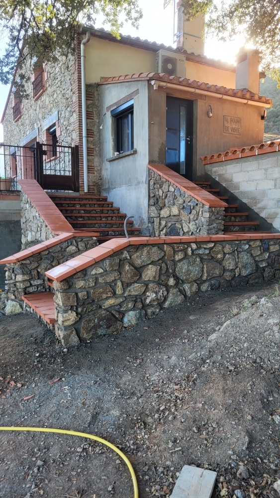Votre maçon à Céret est intervenu pour la réalisation d'une clôture en mur en pierres ainsi que la construction de plusieurs escaliers en pierres autour d'un mas.